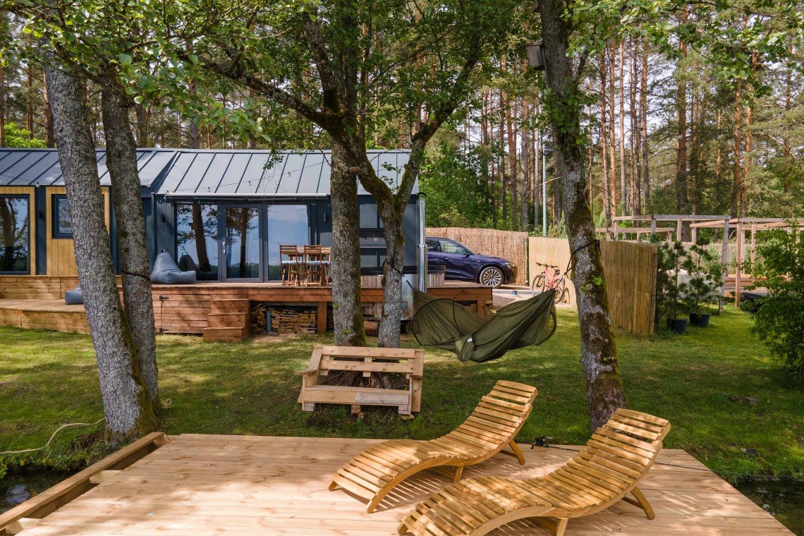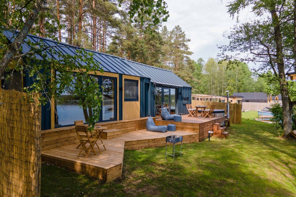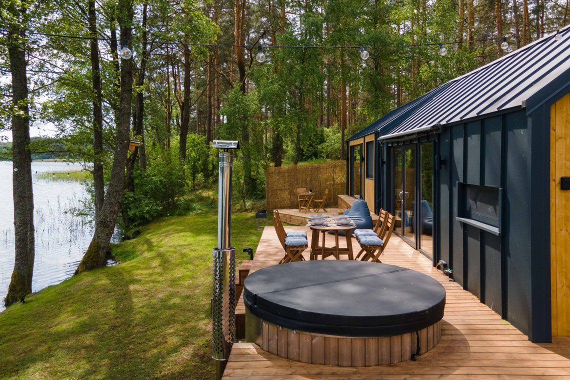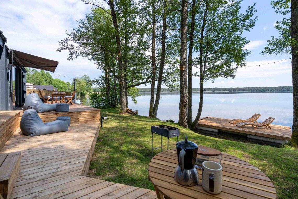 Čia rasite viską, ko reikia trumpiems pabėgimams. Komfortiškas poilsis ežero krante – tikrai įmanomas. Nameliuose rasite visus būtiniausius patogumus: bendra svetainės ir virtuvės zona, atskirą miegamąjį, oro kondicionierius/šildymas, jaukumui ir papildomai šilumai – bio židinys, vonios kambarys su dušo kabina, nereikės rūpintis nei patalyne/rankšluosčiais – viskas Jūsų jau lauks atvykus į šiuos namus. Paisirūpinome ir vidaus pramogomis – stalo žaidimai ar knygos, jaukiai įsitaisiusios lentynoje, kvies juos paimti. Norime, jog svečiams nieko netrūktų ir galėtumėte tik atsipalaiduoti, kurti prisiminimus ir mėgautis kiekviena akimirka.Išsami informacija